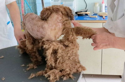 第四,在给泰迪犬护理毛发的时候,如果有特别严重的毛发结球情况,毛发不容易梳理开来。此时,家长就不要在强硬的给泰迪犬梳毛了,可以用剪刀将起毛团的毛发剪掉,然后在进行梳理。